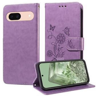 For Google Pixel 9a Butterflies and Flowers Leather Phone Case(Purple)