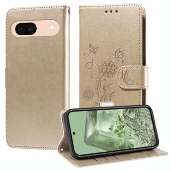 For Google Pixel 8a Embossed Butterfly Flowers Leather Phone Case(Gold)