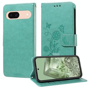For Google Pixel 8a Embossed Butterfly Flowers Leather Phone Case(Green)