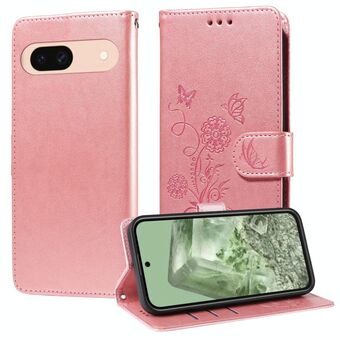 For Google Pixel 8a Embossed Butterfly Flowers Leather Phone Case(Rose Gold)