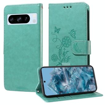For Google Pixel 8 Embossed Butterfly Flowers Leather Phone Case(Green)