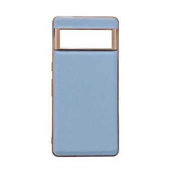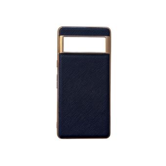 For Google Pixel 6 Nano Electroplating Cross Texture Genuine Leather Phone Case(Blue)