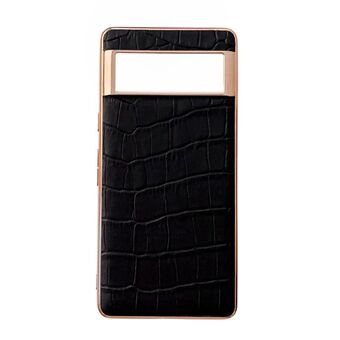 For Google Pixel 6 Crocodile Texture Genuine Leather Electroplating Phone Case(Black)