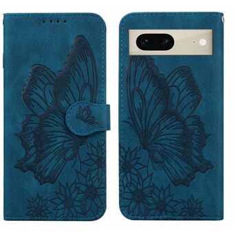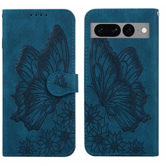 For Google Pixel 7 5G Retro Skin Feel Butterflies Embossing Horizontal Flip Leather Phone Case(Blue)