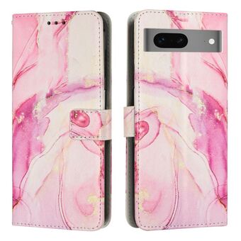For Google Pixel 7 Painted Marble Pattern Leather Phone Case(Pink Green)