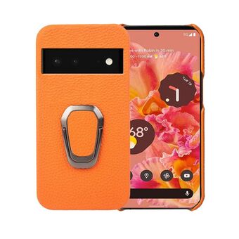 For Google Pixel 6 Ring Holder Litchi Texture Genuine Leather Phone Case(Yellow)