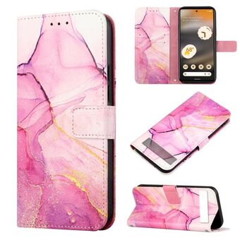 For Google Pixel 7a PT003 Marble Pattern Flip Leather Phone Case(Pink Purple Gold)