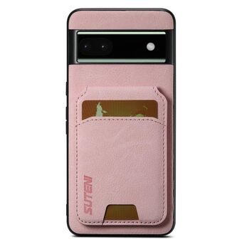 Θήκη κινητού τηλεφώνου Suteni H02 από δέρμα Litchi με κάρτες και βάση για Google Pixel 6a (Μαύρο) (Suteni)