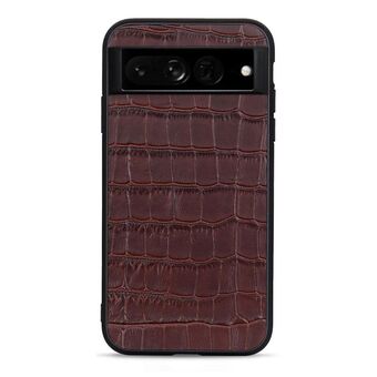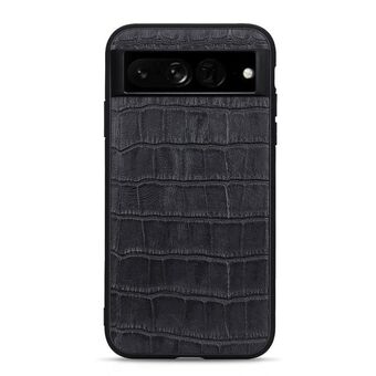 Θήκη τηλεφώνου από γνήσιο δέρμα με ακριβή άνοιγμα και υφή κροκόδειλου για Google Pixel 7 Pro (Μαύρο)