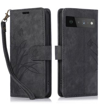 Θήκη τηλεφώνου από δέρμα με ανάγλυφο σχέδιο πεταλούδας ορχιδέας για Google Pixel 6a (Μαύρο)