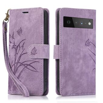 Θήκη τηλεφώνου από δέρμα με ανάγλυφο σχέδιο πεταλούδας ορχιδέας για Google Pixel 6 (Πράσινο)