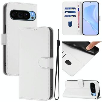 For Google Pixel 9 Pro XL Skin Feel Solid Color Leather Phone Case with Lanyard(White)