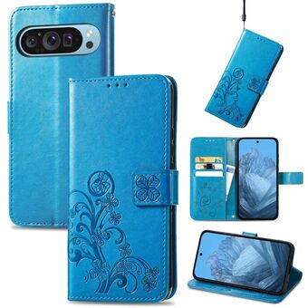 For Google Pixel 9 Pro XL Four-leaf Clasp Embossed Leather Phone Case(Blue)