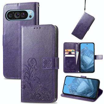 For Google Pixel 9 Four-leaf Clasp Embossed Leather Phone Case(Purple)