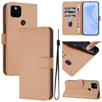 For Google Pixel 5a Skin Feel Solid Color Leather Phone Case with Lanyard(Brown)