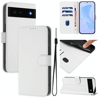 For Google Pixel 6 Skin Feel Solid Color Leather Phone Case with Lanyard(White)