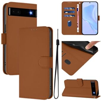 For Google Pixel 6a Skin Feel Solid Color Leather Phone Case with Lanyard(Brown)