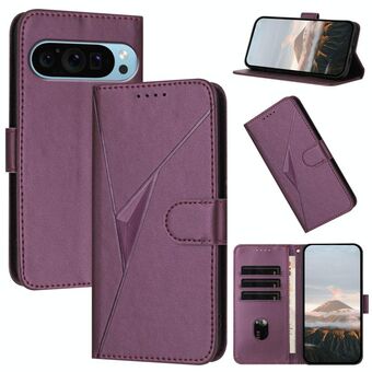 For Google Pixel 9 Pro XL Triangle Pattern Buckle Clasp Leather Phone Case(Dark Purple)