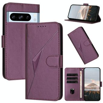 For Google Pixel 8 Triangle Pattern Buckle Clasp Leather Phone Case(Light Purple)