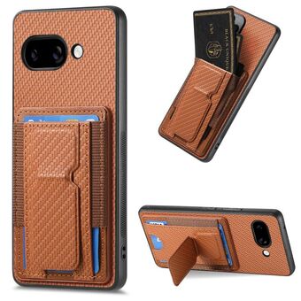 For Google Pixel 9a Carbon Fiber Fold Stand Elastic Card Bag Phone Case(Brown)