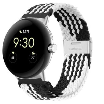 For Google Pixel Watch Metal Buckle Nylon Watch Band(Black White)