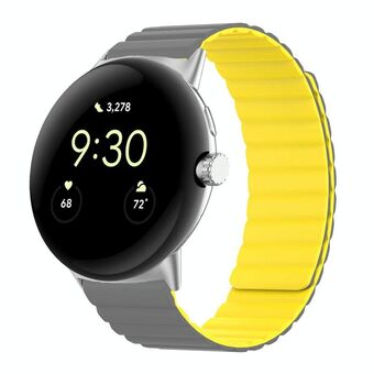 For Google Pixel Watch Two-section Magnetic Silicone Watch Band(Grey Yellow)