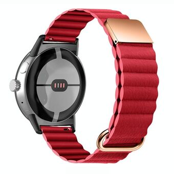 For Google Pixel Watch Reverse Buckle Magnetic Genuine Leather Watch Band(Red)
