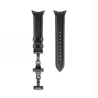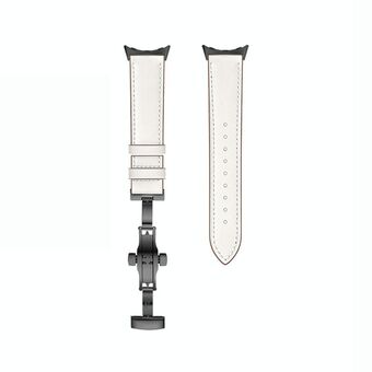 For Google Pixel Watch Butterfly Buckle Genuine Leather Watch Band(Black White)