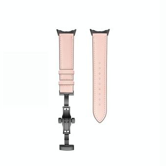 For Google Pixel Watch Butterfly Buckle Genuine Leather Watch Band(Black Pink)
