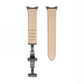 For Google Pixel Watch Butterfly Buckle Genuine Leather Watch Band(Black Apricot)