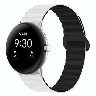 For Google Pixel Watch Reverse Buckle Magnetic Silicone Watch Band(White Black)