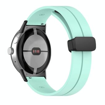 For Google Pixel Watch Solid-color Folding Buckle Silicone Watch Band(Black Mint Green)
