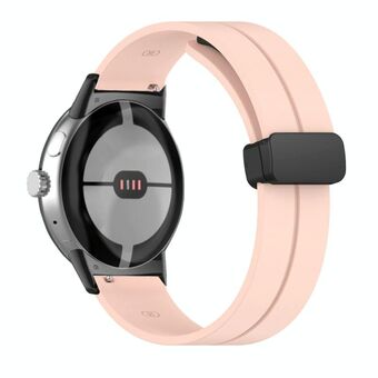 For Google Pixel Watch Solid-color Folding Buckle Silicone Watch Band(Black Pink)