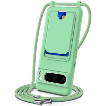 For Google Pixel 8 Pro Integrated Card Bag Solid Color Liquid Silicone Phone Case with Lanyard(Green)