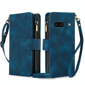 For Google Pixel 8 Dream 9-Card Zipper Wallet RFID Leather Phone Case with Lanyard(Blue)