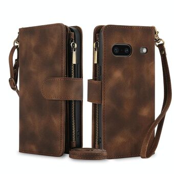 For Google Pixel 8 Dream 9-Card Zipper Wallet RFID Leather Phone Case with Lanyard(Brown)