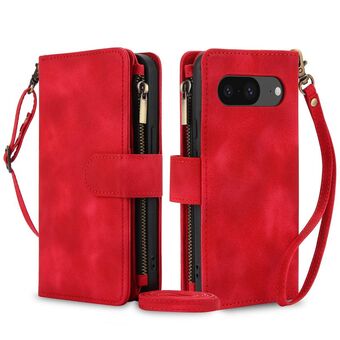 For Google Pixel 8 Dream 9-Card Zipper Wallet RFID Leather Phone Case with Lanyard(Red)