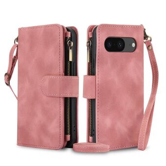 For Google Pixel 8 Dream 9-Card Zipper Wallet RFID Leather Phone Case with Lanyard(Rose Gold)