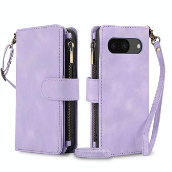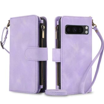 For Google Pixel 8 Dream 9-Card Zipper Wallet RFID Leather Phone Case with Lanyard(Purple)