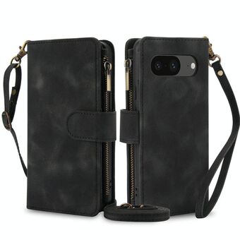 For Google Pixel 8 Dream 9-Card Zipper Wallet RFID Leather Phone Case with Lanyard(Black)