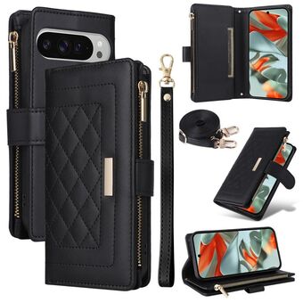 For Google Pixel 9 / 9 Pro Crossbody Zipper Wallet Rhombus Leather Phone Case(Black)