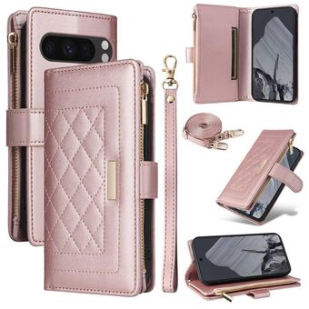 For Google Pixel 8 Pro Crossbody Zipper Wallet Rhombus Leather Phone Case(Rose Gold)