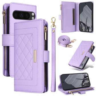 For Google Pixel 9 Pro XL Crossbody Zipper Wallet Rhombus Leather Phone Case(Purple)