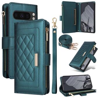 For Google Pixel 9 Pro XL Crossbody Zipper Wallet Rhombus Leather Phone Case(Green)