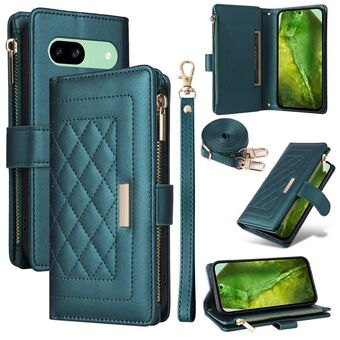 For Google Pixel 8a Crossbody Zipper Wallet Rhombus Leather Phone Case(Green)