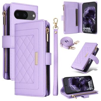 For Google Pixel 8 Crossbody Zipper Wallet Rhombus Leather Phone Case(Purple)