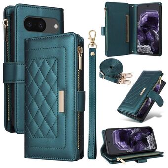 For Google Pixel 9 / 9 Pro Crossbody Zipper Wallet Rhombus Leather Phone Case(Green)