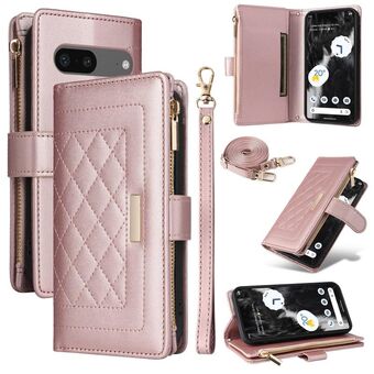 For Google Pixel 7a Crossbody Zipper Wallet Rhombus Leather Phone Case(Rose Gold)