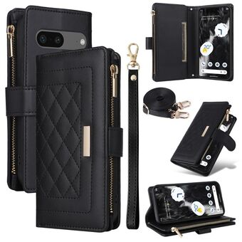 For Google Pixel 7a Crossbody Zipper Wallet Rhombus Leather Phone Case(Black)