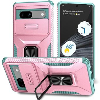 For Google Pixel 7a Sliding Camshield Holder Phone Case(Pink + Grey Green)